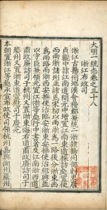One may have some sympathy for the operative who was told to carry out this task, as it was necessary to excise the words “Great Ming” in several thousand places, and inevitably some were missed. And so we find that in the Bodleian copy, the original title 《大明一統志》 remains at the end of juan 54, and in the banxin of the following leaves: