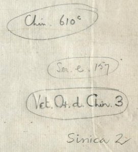 Hyde was thus able to make a list of all the Chinese materials then in the Bodleian, which can be found among his papers at the British Library (MS Sloane 853). His descriptions are a summary of those written on to the books themselves at the time of Shen’s visit. They were later used almost unchanged in Edward Bernard’s Catalogi librorum manuscriptorum Angliae et Hibernae in unum collecti, cum indice alphabetico (Oxford, 1697) to describe the Libri sinenses in Arch.Bodl.A (p.149), where what is now Sinica 2 appears as: