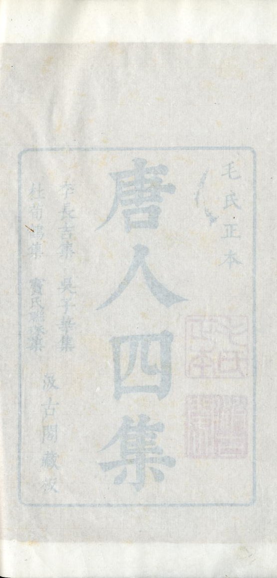 Mao Jin’s publications are a joy to book collectors and scholars owing to the excellence of both their recension and production. In the Bodleian collections, one in particular stands out, his edition of Four Tang poets 唐人四集 which I catalogue as follows: