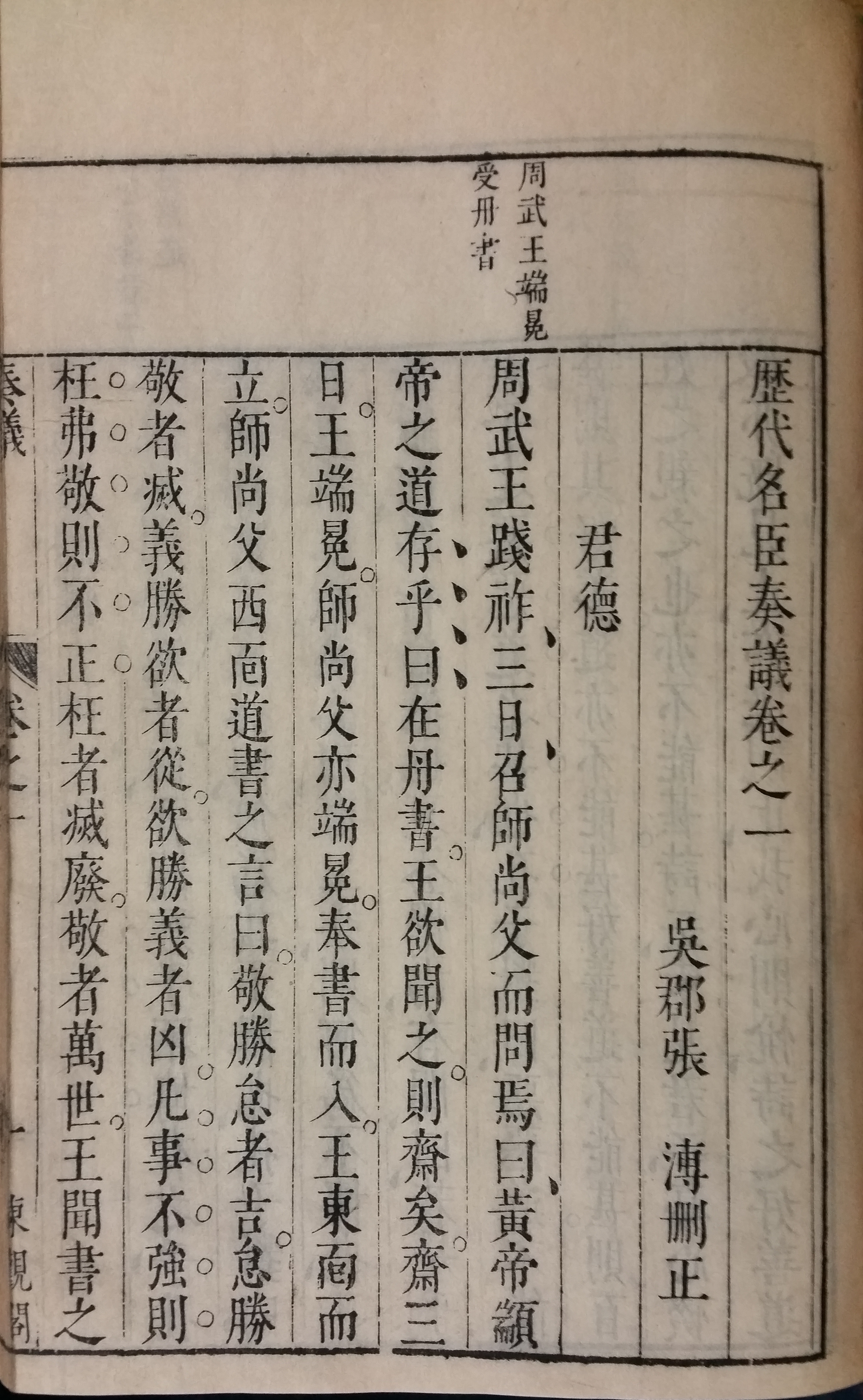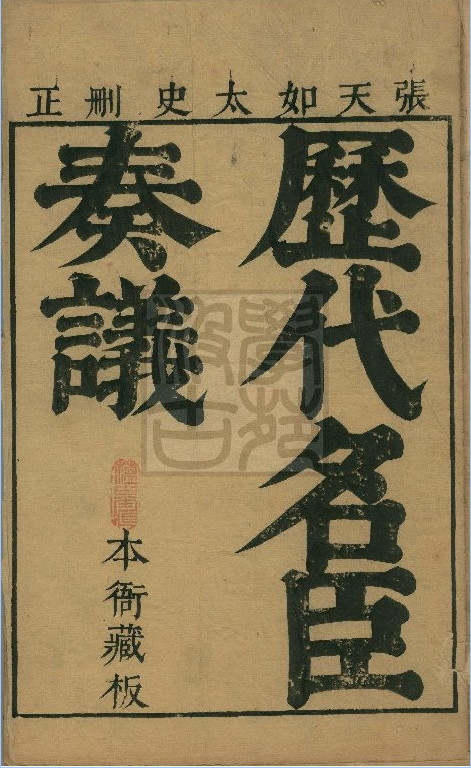 歷代名臣奏議 三百十九卷 / (明)永樂十四年[1416]黃淮等奉敕編 ; (明)張溥刪正 ; (清)張永錫, (清)張玉衡, (清)張玉璇重較