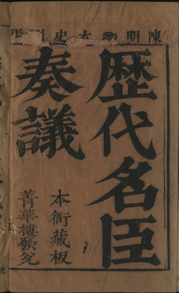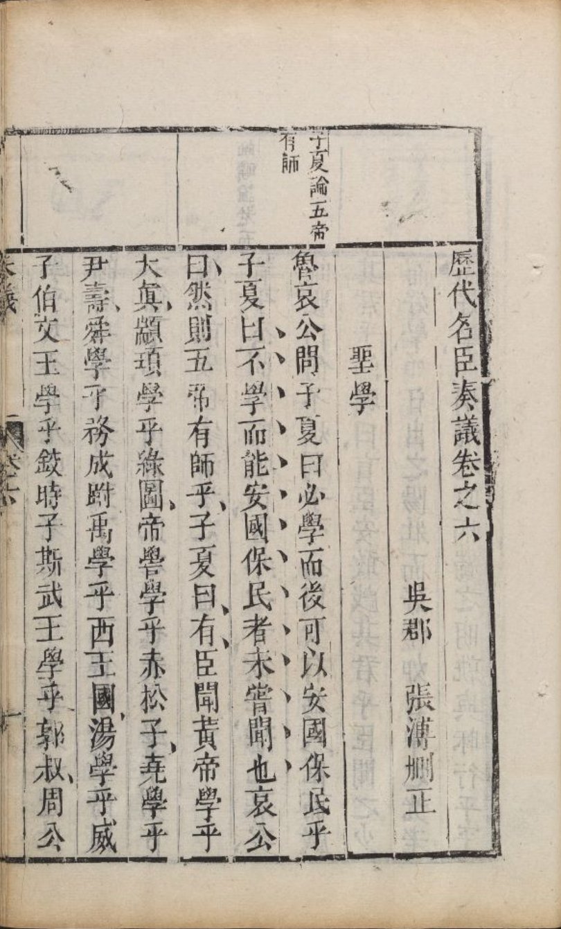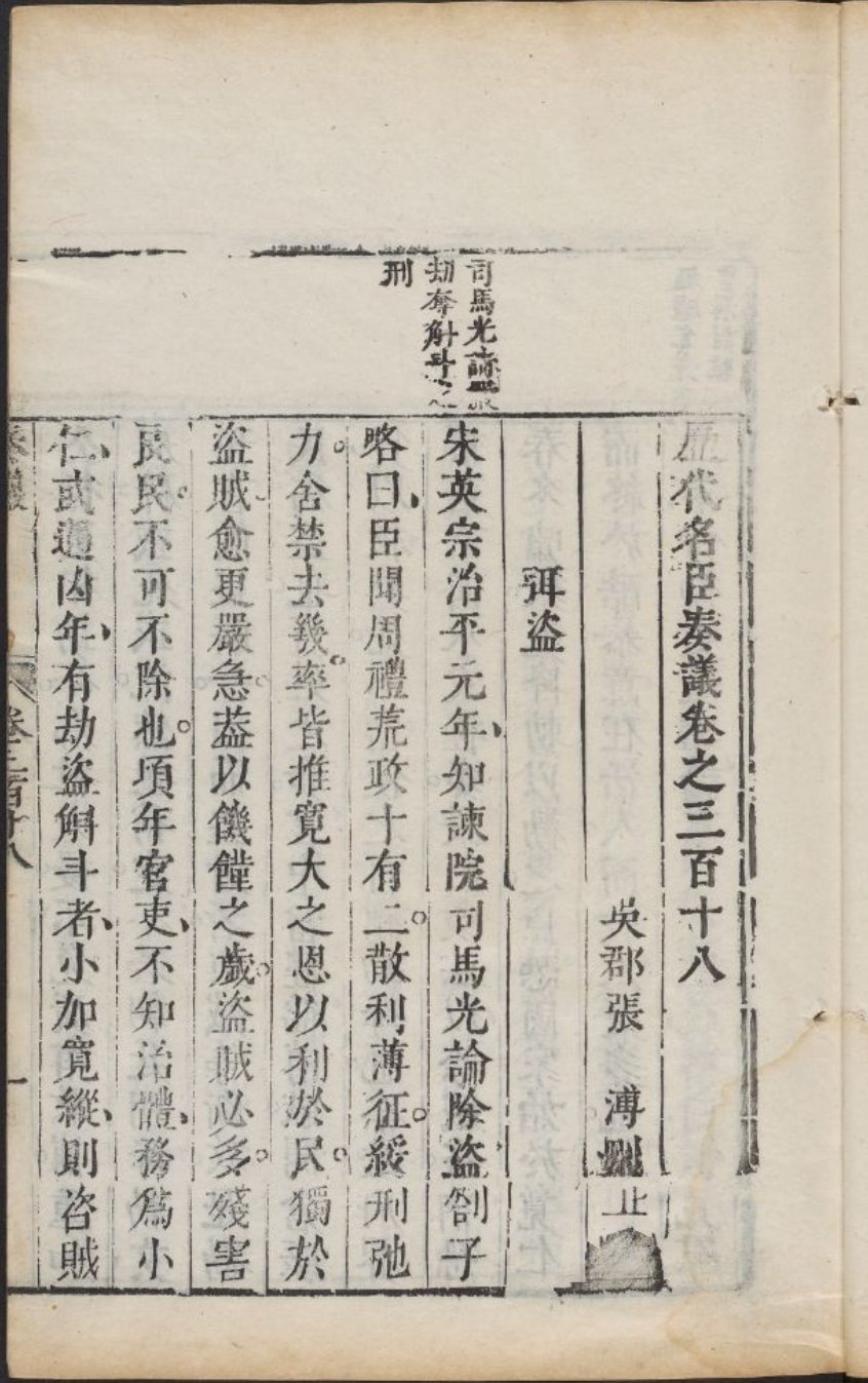 歷代名臣奏議 三百二十卷 / (明)永樂十四年[1416]黃淮等奉敕編 ; (明)張溥刪正 ; (清)張永錫, (清)張玉衡, (清)張玉璇重較