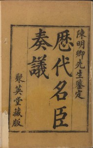 Another edition which puzzled me at that time was a collection of memorials of famous ministers. Like the Survey of the Great Ming Empire, it is a large work. It had originally been compiled and printed in 1416 by order of the Yongle emperor.