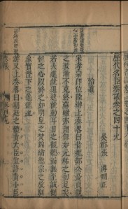 However, in the review of the original Yongle edition of the memorials in the tiyao 提要 (卷55, 史部11), Zhang Pu’s edition is described in rather unflattering terms. There is criticism of the way in which he has carried out the pruning of the original text, which is particularly severe in the periods following the Tang 唐. An extreme example of this is juan 83, where Zhang Pu has reduced the 34 leaves of the Yongle edition to a single leaf in his own. But it is hard to say whether this would have had any bearing on the saleability of the edition, even if the blocks were still around 150 years after they had been cut (the tiyao were not submitted to the throne until 1781).