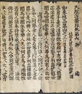 Peter acquired all the books in the collection on numerous visits to Japan over a period of 40 years, with the exception of two which he bought from Sam Fogg Rare Books in London. These are not only the two oldest books in the collection, but are also kanseki wakokuhon, and thus fall within the remit of the Serica Project. They are both fragments of Buddhist texts and are fine examples of mediaeval Japanese temple printing.