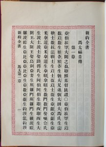 The Bibles in the Sinica collection are for the most part those that were acquired before the inception of the Nicholson classification in 1883. There are 121 editions, most of which are not complete Bibles, but single books or groups of books.
