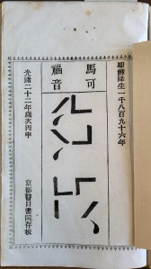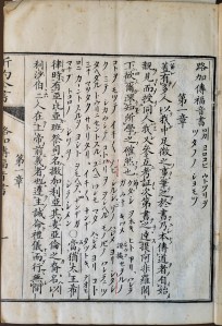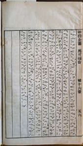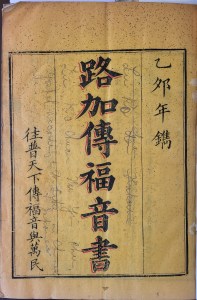 Finally, this very interesting edition came to light as I was going through the collection. It isn’t Chinese, and is an example of how Library books in non-roman scripts were often inappropriately shelfmarked so that they lay unnoticed and unidentified, sometimes getting lost for centuries. It’s actually in Japanese, but has a Chinese shelfmark. It’s a translation of St Luke’s gospel by Bernard Jean Bettelheim (1811-1869) which was blockcut in 1855. The text is in kambun 漢文, and each section is followed by a translation into Japanese expressed in katakana カタカナ: