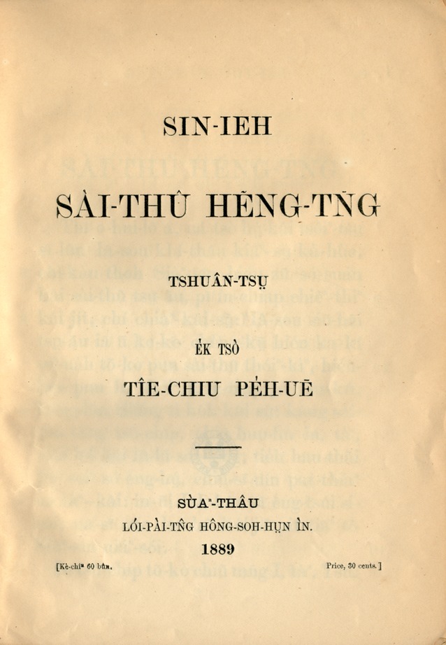 This is a translation of the Acts into the dialect of Swatow (Shantou 汕頭), a coastal city at the eastern end of Guangdong Province, typeset and published in 1889: